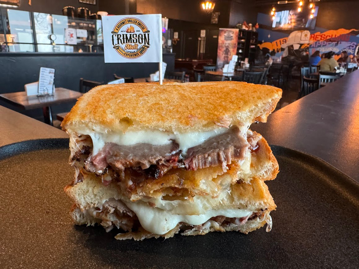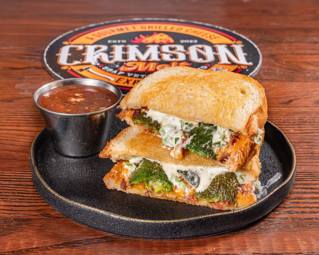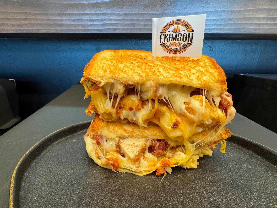 The Crimson Melt is an eclectic concept that was ignited inside a firehouse. As firefighters respond to emergencies during late-night shifts, They often come back to their firehouses both tired and hungry. One thing they could always count on to be in the firehouse kitchen was butter, cheese, and bread due to the shift dinners that were made. Thus, they would often turn to a quick grilled cheese sandwich to curb hunger pains - but not just any grilled cheese sandwich…a "foodie style" masterpiece layered with a smorgasbord of whatever food items they could find in the shift fridge at the time. Thus, The Crimson Melt was born!